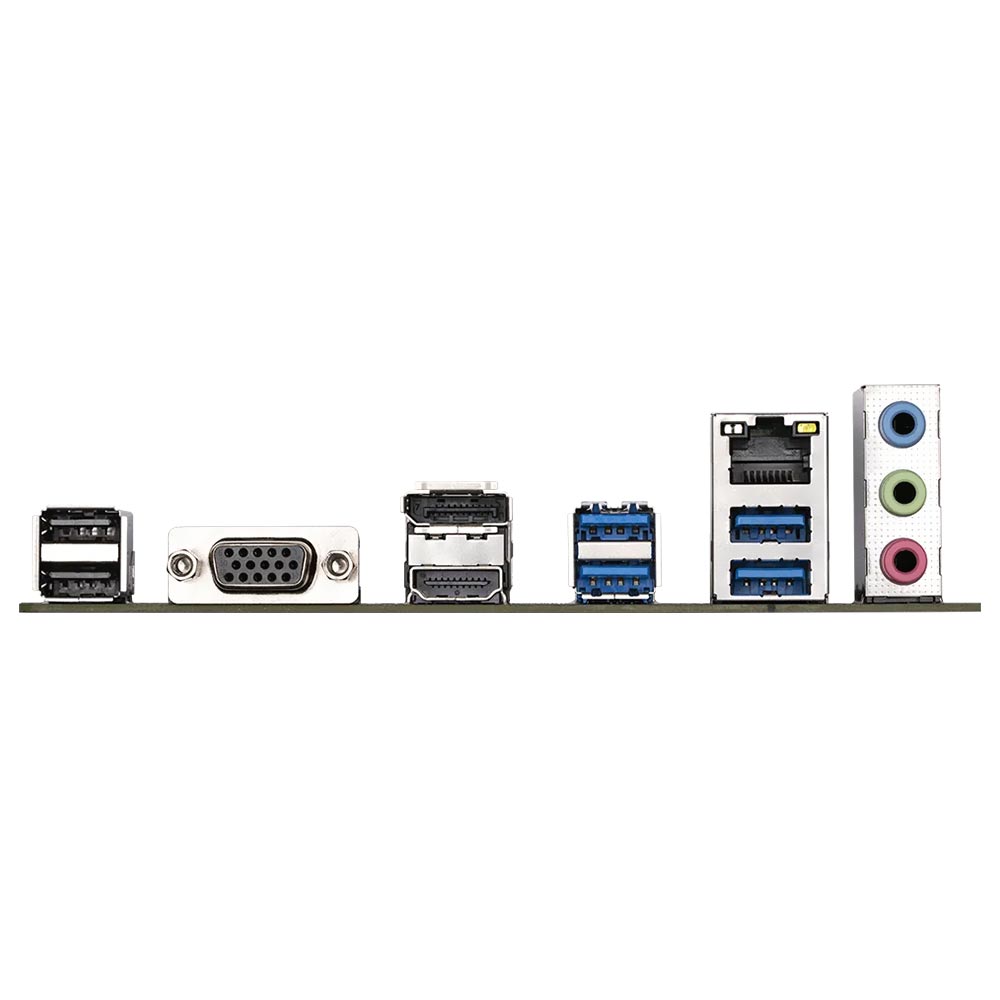 | Conectores do Painel Traseiro | 4x USB 3.2 Geração 1 - 2x USB 2.0 - 1x HDMI - 1x DisplayPort - 1x D-Sub - 1x RJ-45 - 3x Conectores de Áudio |