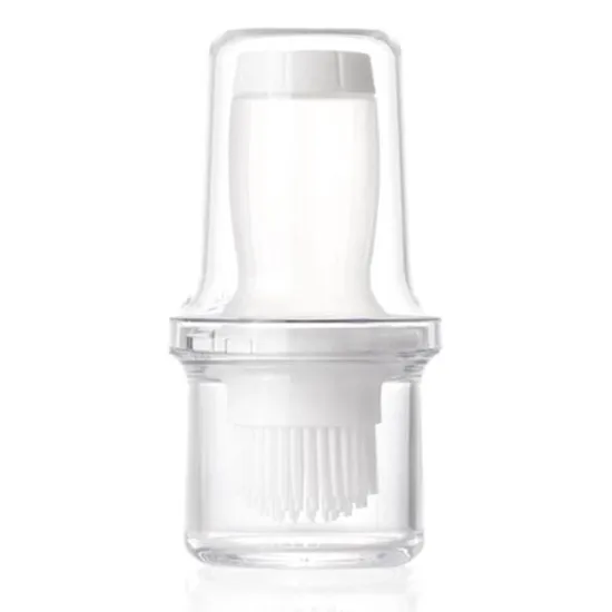 ESTE PORTA-ÓLEO COM PINCEL DE SILICONE É UMA FERRAMENTA PRÁTICA PARA APLICAR ÓLEO DE MANEIRA UNIFORME AO COZINHAR. SEU DESIGN INCLUI UM RECIPIENTE TRANSPARENTE PARA ARMAZENAR ÓLEO E UM PINCEL DE SILICONE COM SISTEMA DE DOSAGEM, PERMITINDO UM CONTROLE PRECISO NA APLICAÇÃO SOBRE ALIMENTOS OU UTENSÍLIOS DE COZINHA.