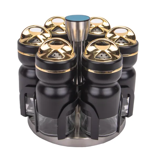Porta Tempero Giratório Condimento 6 Peças Inox Preto Redondo