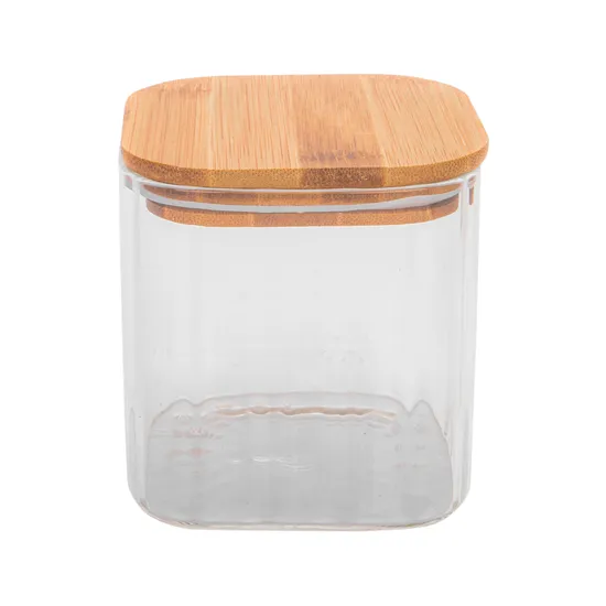 Pote de Vidrio Tampa de Bambu 10X10CM