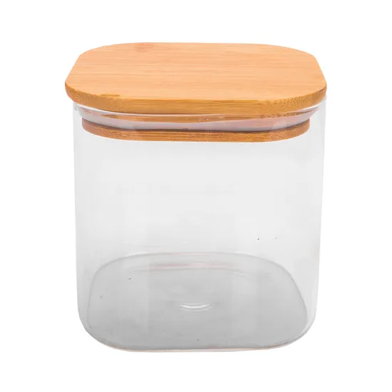 Pote de Vidrio Tampa de Bambu 10X10CM
