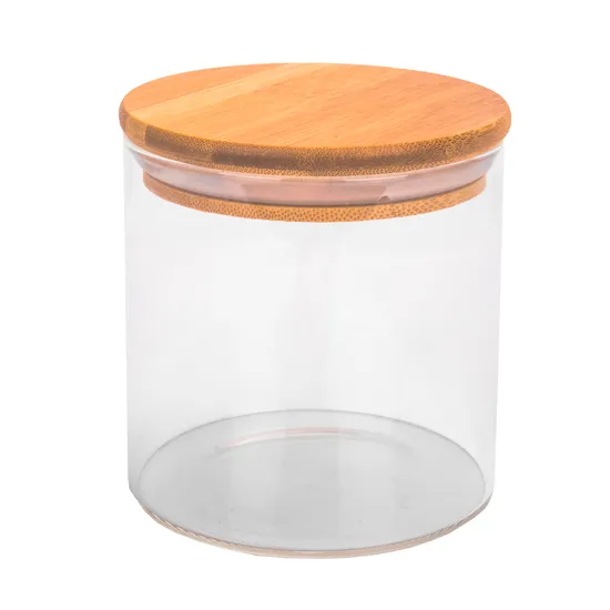Pote de Vidrio Tampa de Bambu 10X10CM