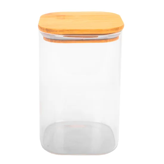 Pote de Vidrio Tampa de Bambu 10X15CM