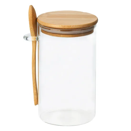 Pote de Vidrio Tampa de Bambu 10X20CM