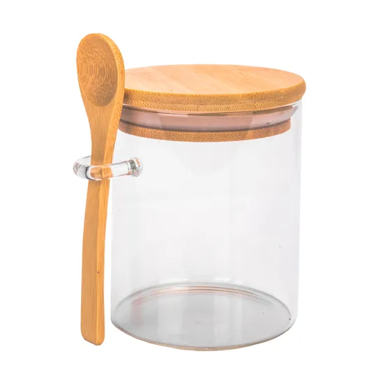 Pote de Vidrio Tampa de Bambu 8,5X10CM