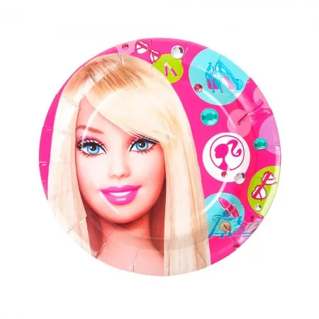 Pratos Descartaveis para Festa Barbie 10 Unidades 18 X 18 CM