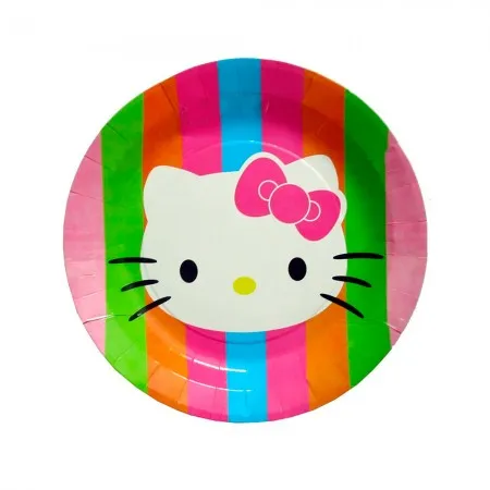 Pratos Descartaveis para Festa Hello Kitty 10 Unidades 18 X 18 CM
