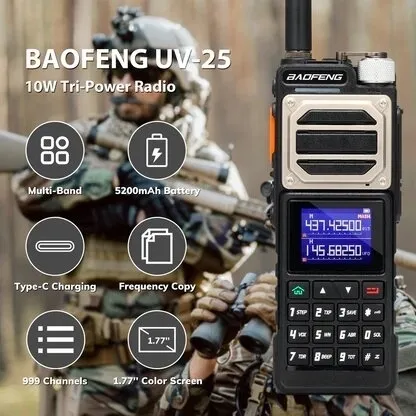 Radio Baofeng UV-25 Pro Max 10W Walkie Talkie Tri-Band