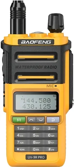 Rádio Dual Band Walkie Talkie Baofeng UV-9R Pro V1 (Unidade) - Amarelo