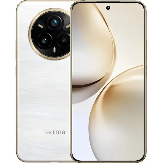 También cuenta con 5G, NFC, certificación IP68 (resistente al agua y al polvo), Android 15 con Realme UI 6.0, lector de huellas en pantalla y un diseño elegante en color blanco.