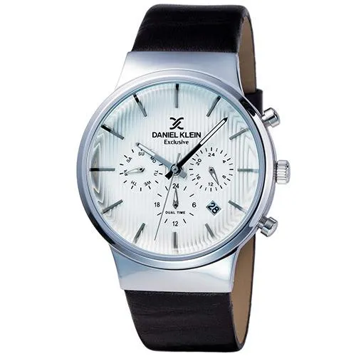 Relógio Analógico Daniel Klein Exclusive DK11891-3 Masculino Pulseira de Couro - Preto e Prata