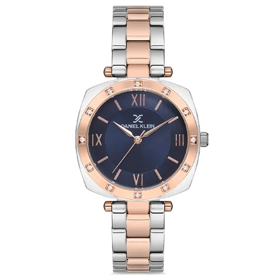 Relógio Analógico Feminino Daniel Klein DK.1.12688-5 Premium Ladies / Pulseira de Aço Inoxidável - Prata/Rose Gold/Azul