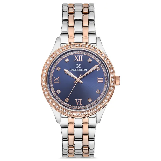 Relógio Analógico Feminino Daniel Klein DK.1.12699-4 Premium Ladies / Pulseira de Aço Inoxidável - Prata/Rose Gold/Azul