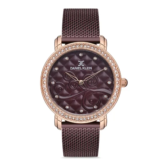 Relógio Analógico Feminino Daniel Klein DK.1.12730-7 Premium Ladies / Pulseira de Malha - Bordô/Rose Gold