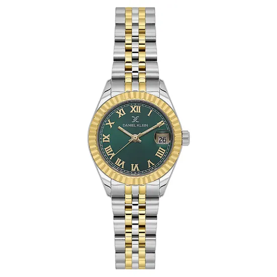 Relogio Analogico Feminino Daniel Klein DK.1.14097-4 Premium Lady / Pulseira de Aço Inoxidável - Prata/Gold/Verde