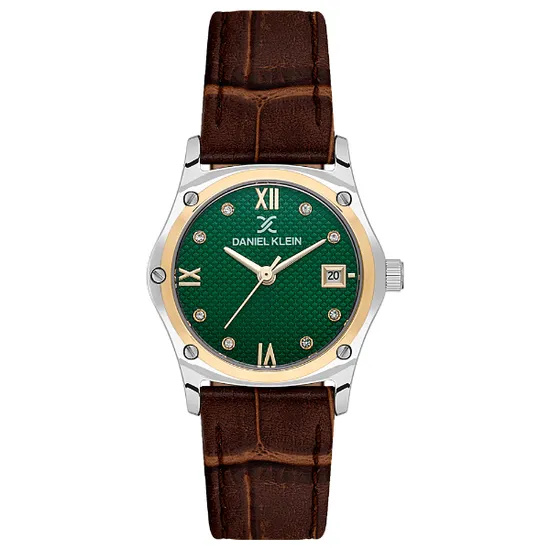 Relogio Analogico Feminino Daniel Klein DK.1.14270-4 Premium Lady / Pulseira de Couro - Marrom/ Prata/ Gold/ Verde