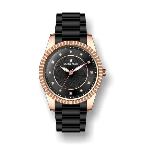 Relógio Analógico Feminino Daniel Klein Premium DK.1.12262-5 - Preto e Rosa Ouro