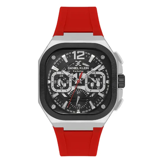 Relogio Analógico Masculino Daniel Klein DK.1.14008-6 Exclusive Gent / Pulseira de Silicone - Vermelho/Prata/Preto