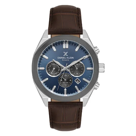 Relogio Analógico Masculino Daniel Klein DK.1.14065-5 Exclusive Gent / Pulseira de Couro - Marrom/Azul