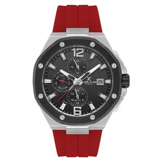 Relogio Analógico Masculino Daniel Klein DK.1.14092-3 Exclusive Gent / Pulseira de Silicone - Vermelho/Prata