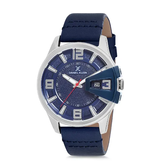 Relogio Analógico Masculino Daniel Klein DK12161-6 Premium Gents / Pulseira de Couro Genuino - Azul/Prata