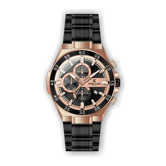 Relógio Analógico Masculino Daniel Klein Exclusive DK.1.12362-6 - Preto e Rosa Ouro