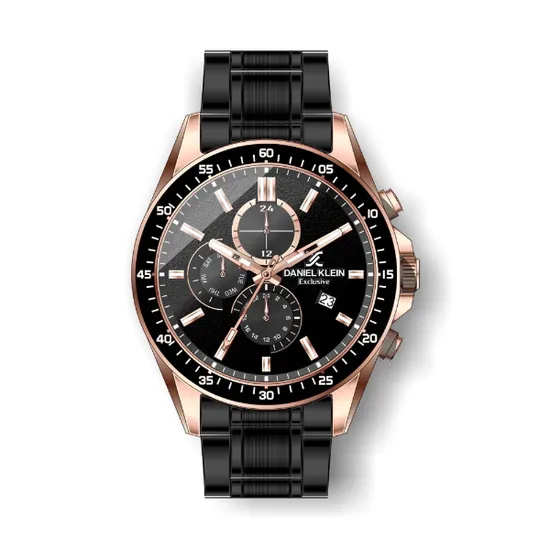 Relógio Analógico Masculino Daniel Klein Exclusive DK.1.12456-4 - Preto e Rosa Ouro