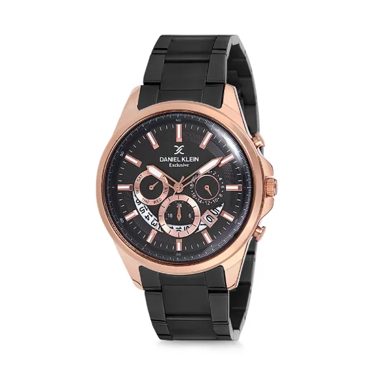 Relógio Analógico Masculino Daniel Klein Exclusive DK12110-3 - Preto e Rosa Ouro