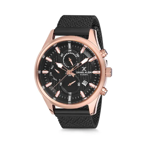 Relógio Analógico Masculino Daniel Klein Exclusive DK12222-6 - Preto e Rosa Ouro