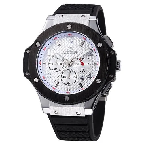 Relógio Analógico Megir Racing MN3002GBK-7 Masculino, Silicone - Preto e Prata