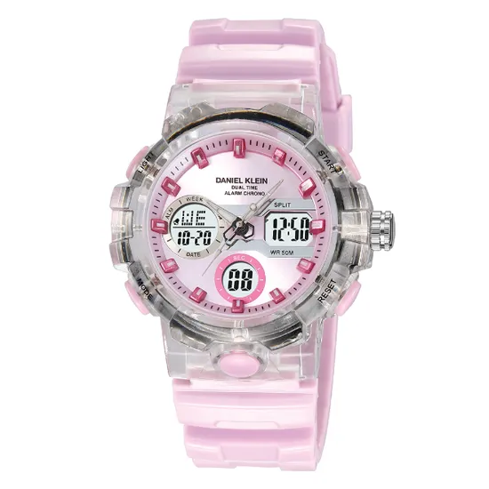 Relogio Digital Masculino Daniel Klein DK.2386-2 Summer 25 / Pulseira de Silicone - Rosa