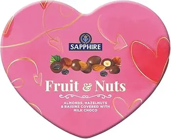 Sapphire Choco. Coated Nuts Fruit.Nut Heart Tin 160GR
