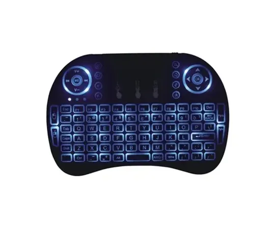 El AK-724G es un teclado compacto "Todo en Uno" que elimina la necesidad de un mouse por separado gracias a su touchpad integrado. Utiliza tecnología inalámbrica de 2.4GHz para garantizar una conexión estable y sin retrasos hasta a 10 metros de distancia. Su diseño delgado y ligero lo hace ideal para navegar en YouTube, Netflix o navegar por la web en tu televisor o PC.