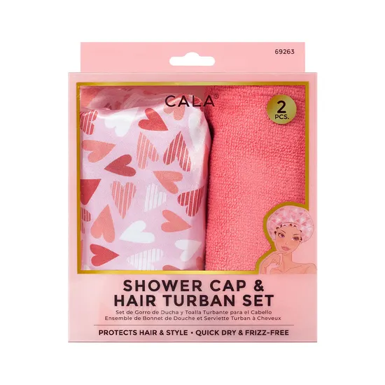 Set Cala Shower Cap & Hair Turban Hearts 2 Piezas