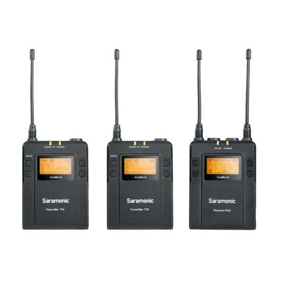 Sistema de Microfone de Lapela Sem Fio Uhf Saramonic UWMIC9 Kit 2 com 2 Transmissor e 1 Receptor - 2TX9 1RX9