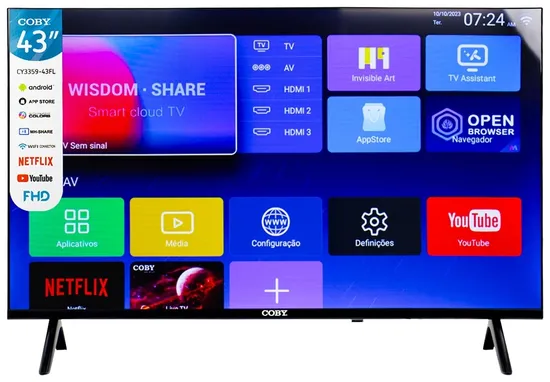 Especificações de Smart TV LED Coby 43" CY3359-43FL Full HD/Digital/Wifi/Android 12