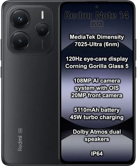 Especificações de Smartphone Xiaomi Redmi Note 14 5G Dual Sim 6.67" 8GB/256GB Black (Global)
