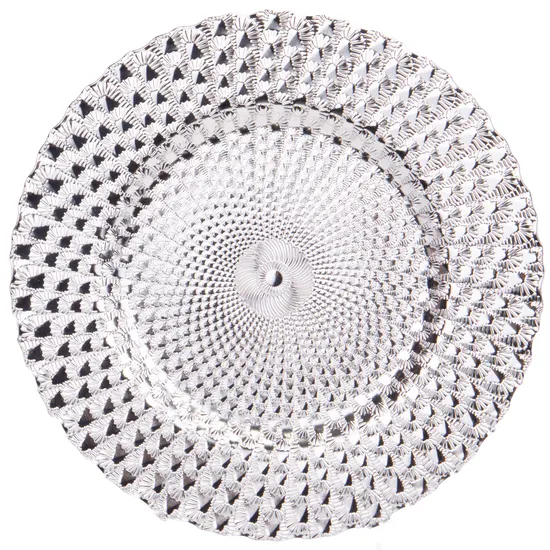 Sousplat Redondo Luxo 33CM Trabalhado Em Alto Relevo Plata
