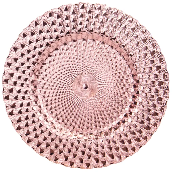 Sousplat Redondo Luxo 33CM Trabalhado Em Alto Relevo Rose