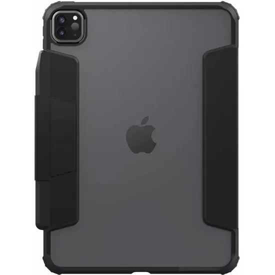 Incluye soporte integrado tipo kickstand, ideal para ver contenido o trabajar con las manos libres, y es totalmente compatible con el Apple Pencil, permitiendo almacenamiento seguro y uso sin restricciones. Su parte trasera transparente mantiene el diseño original del iPad visible, mientras que el marco negro aporta un acabado elegante y profesional.