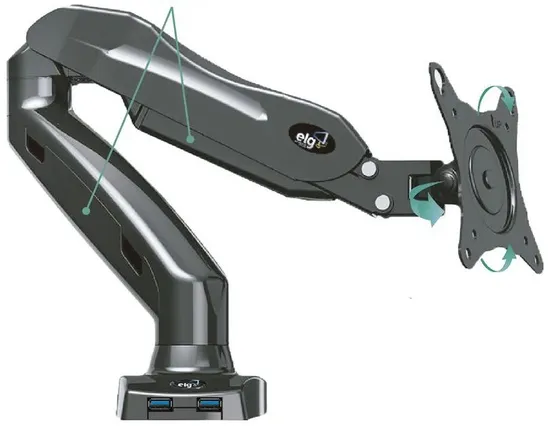 Especificações de Suporte Articulado de Mesa Elg F90USB para Monitores de 17" A 27" (Pistão A Gás) Porta USB