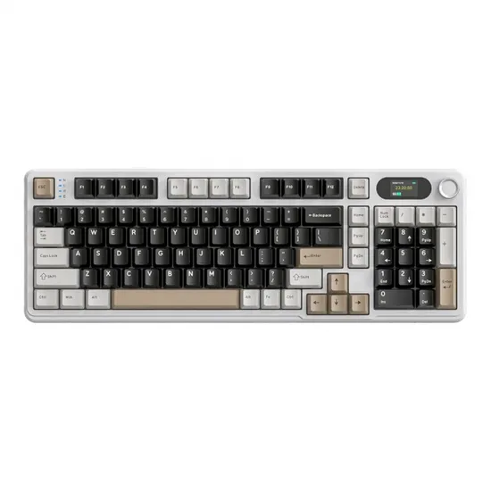 Teclado Game Mecanico Sem Fio Attack Shark X98 Pro, Tri-Modes, USB-A/USB-C/Bluetooth/Wifi 2.4GHZ, RGB, Inglês, Cheese White Blueberry Switch