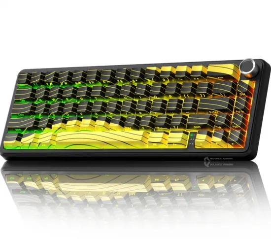 Teclado Game Magnetico Sem Fio 60% Attack Shark X65PRO He, Tri-Modes, USB-A/USB-C/Bluetooth/Wifi 2.4GHZ, RGB, Inglês, Black And Yellow Contour Lines