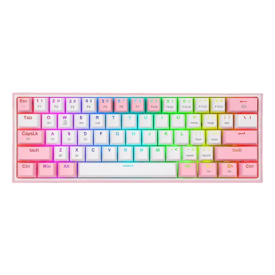 Teclado Gamer Redragon Fizz Pro K616-RGB USB-C Sem Fio - Branco e Rosa