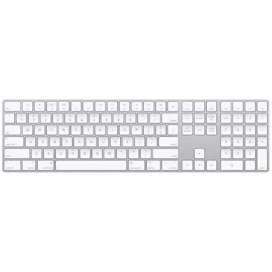 Teclado Sem Fio Apple Magic Keyboard With Numeric Keypad A1843 MXCJ3LL Inglês com Bluetooth - Branco/Prata