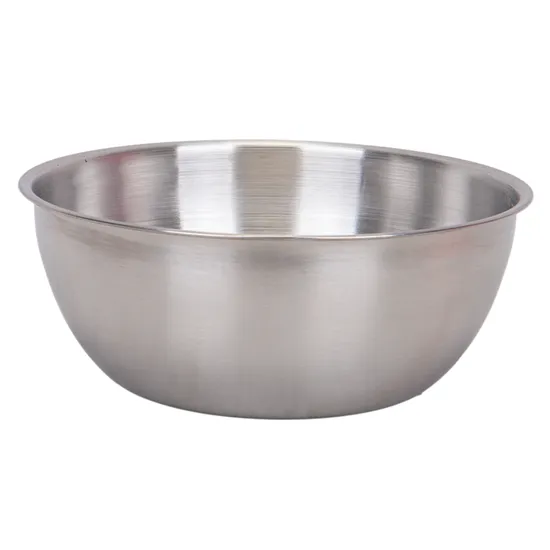 Bowl de aço inoxidável de alta resistência, ideal para misturar, bater ou servir alimentos. Seu acabamento escovado o torna resistente a arranhões e fácil de limpar. Perfeito para uso em confeitaria, cozinha profissional ou doméstica. Não retém odores nem sabores.