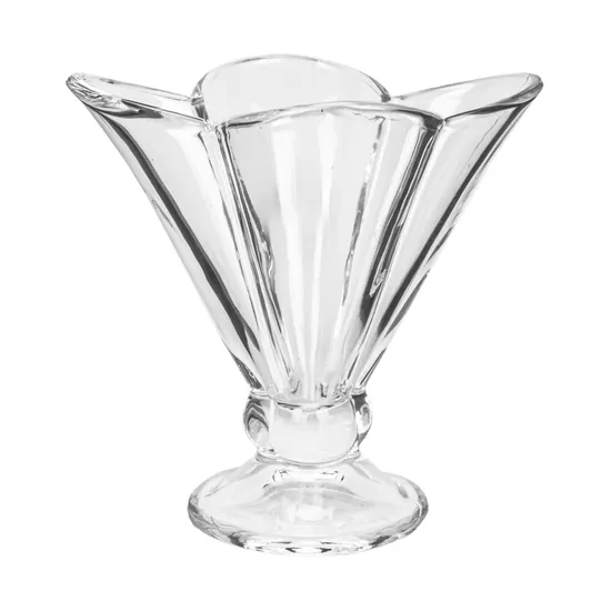 TIGELA DE VIDRO EM FORMA DE LÓTUS, MEDIDAS 12X12 CM. IDEAL PARA SERVIR SOBREMESAS EM EVENTOS OU OCASIÕES ESPECIAIS.