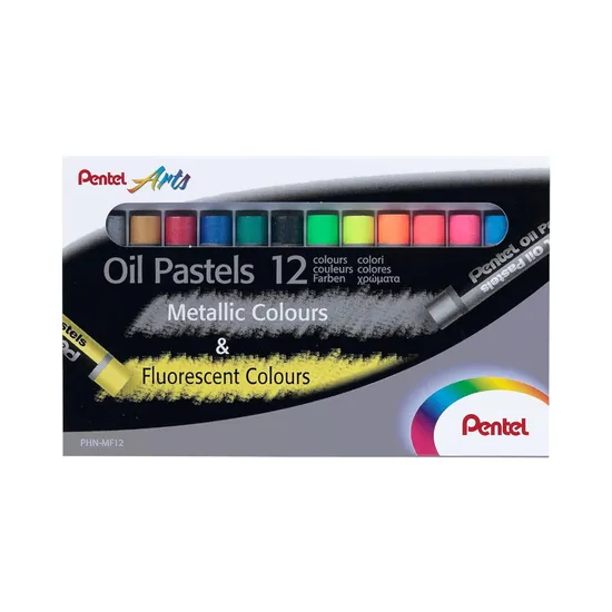 Tizas Pentel Arts Oil Pastels Metallic Y Fluorescent Colours PHN-MF12 12 Unidades