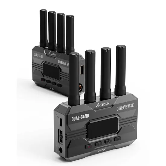 O CineView SE utiliza a tecnologia Dual-Band da Accsoon com quatro antenas para transmissão confiável e estável. É menor e mais leve que modelos anteriores e pode ser utilizado com até quatro unidades RX CineView ou dispositivos iOS/Android. O aplicativo Accsoon Go permite monitoramento, gravação e transmissão em dispositivos móveis, e foi atualizado com novas ferramentas como onion skinning, smart sharpening e carregamento e gravação de LUT. O CineView SE é alimentado por uma nova plataforma de processamento mais rápida, menor e mais eficiente termicamente. Com baixo consumo de energia, pode funcionar por horas com uma única bateria e também pode ser alimentado via DC ou USB-C. No geral, o CineView SE oferece uma solução de alta qualidade, flexível e eficiente para monitoramento sem fio em produções.