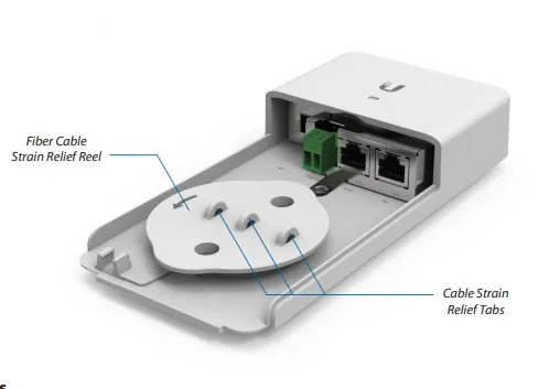 O FiberPoE possui um fator de forma resistente a intempéries ao ar livre com gerenciamento integrado de alívio de tensão.